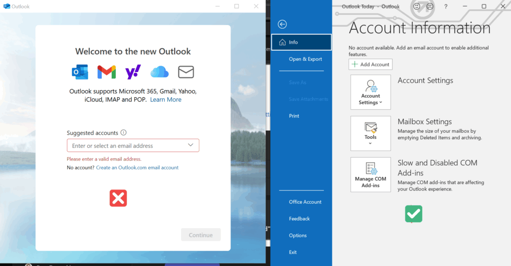 Launch Microsoft Outlook on your computer. Note that the Classic Outlook is the Desktop Application from M365 and differs slightly from the New Outlook for Windows from the Microsoft store. The Microsoft outlook Classic is the one on the right.