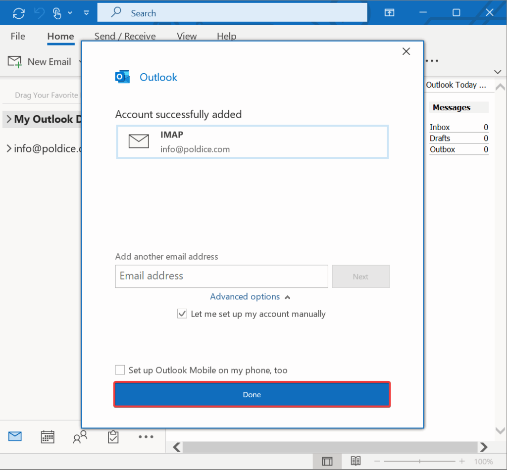 **Your email account is now configured in Microsoft Outlook [Classic]**
