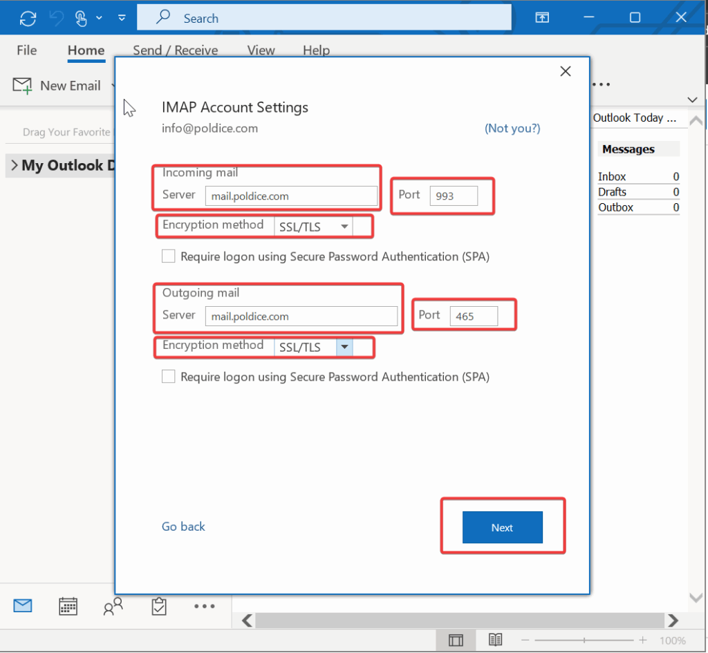 mail.yourdomain.com - Incoming Server Port: 993