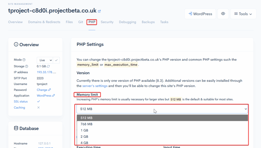 - Locate the PHP Memory Limit option.