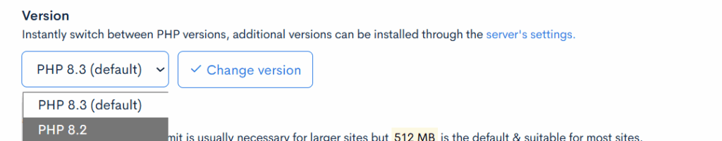 - PHP Version: Switch between supported versions for compatibility.