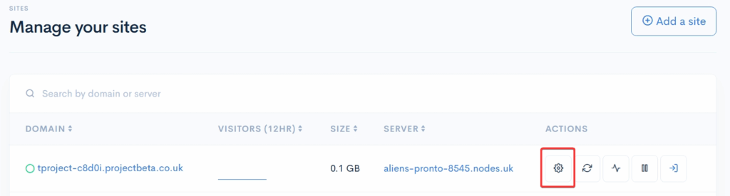 - Click the Settings tab next to the site you want to manage.