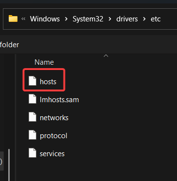 C:\Windows\System32\Drivers\etc\ - Change file type dropdown to “All Files (.)”