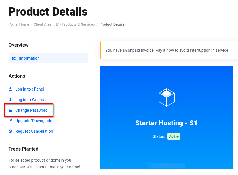 - Click Change Password under the Actions section on the left-hand side