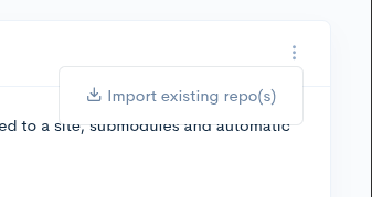 - Click the three-dot menu on the right-hand side and click Import existing repo(s)