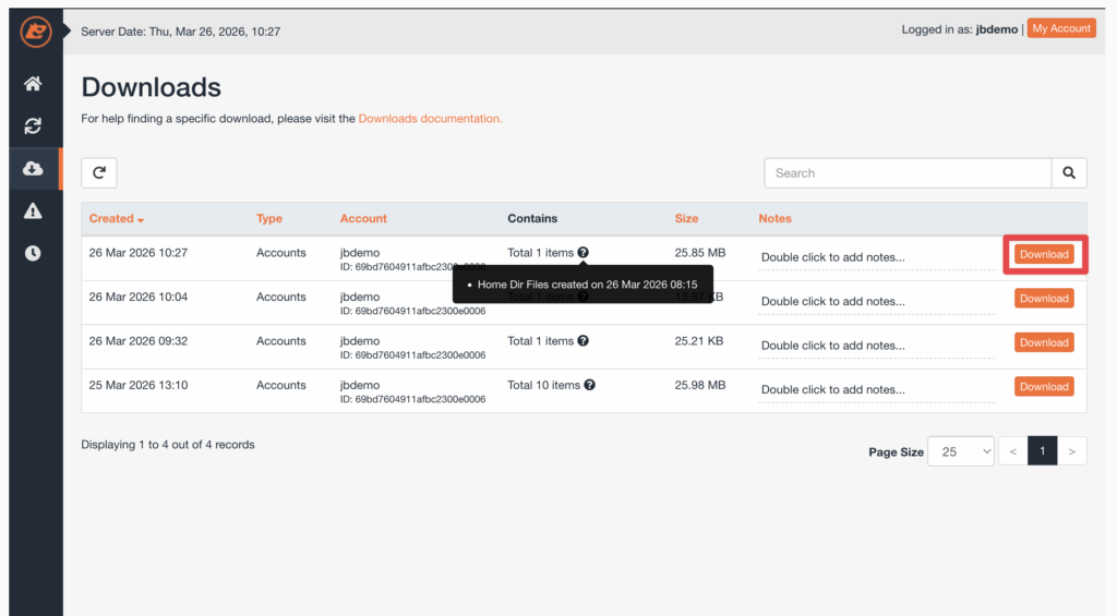 JetBackup – Restoring or Downloading Files from a Home Directory