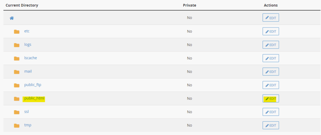 3. Typically, most websites are within your public_html directory, however feel free to protect which ever directory you like by selecting Edit.