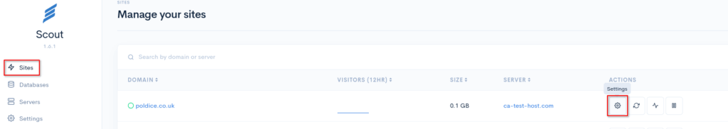 - In Scout, you’ll see a list of your Sites.