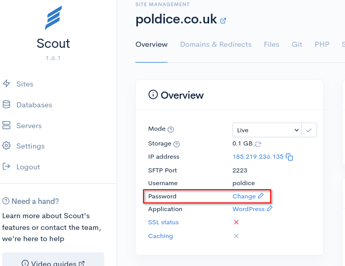You can reset your SFTP password in Scout in just a few clicks. This is useful if: