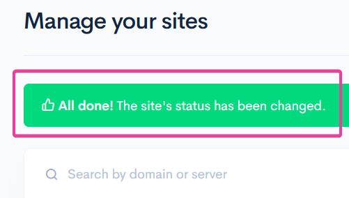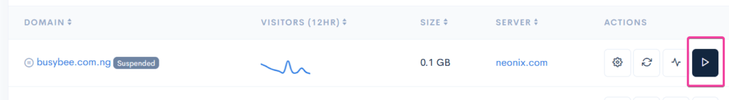 Restoring access is just as easy. When you’re ready for the site to be public again, find the same site in your list and click the Play ( ▷ ) button.