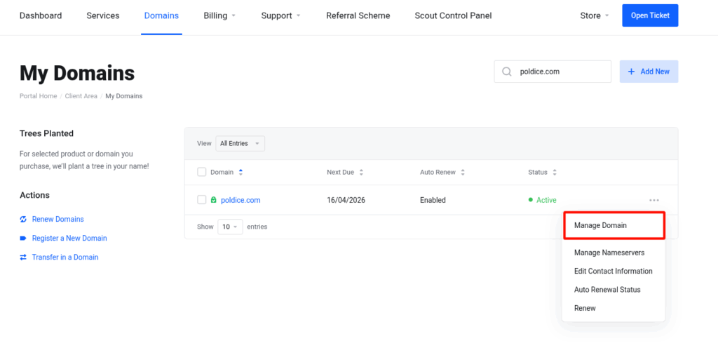 1. Login to your Customer Portal, then navigate to Domains/My Domains.